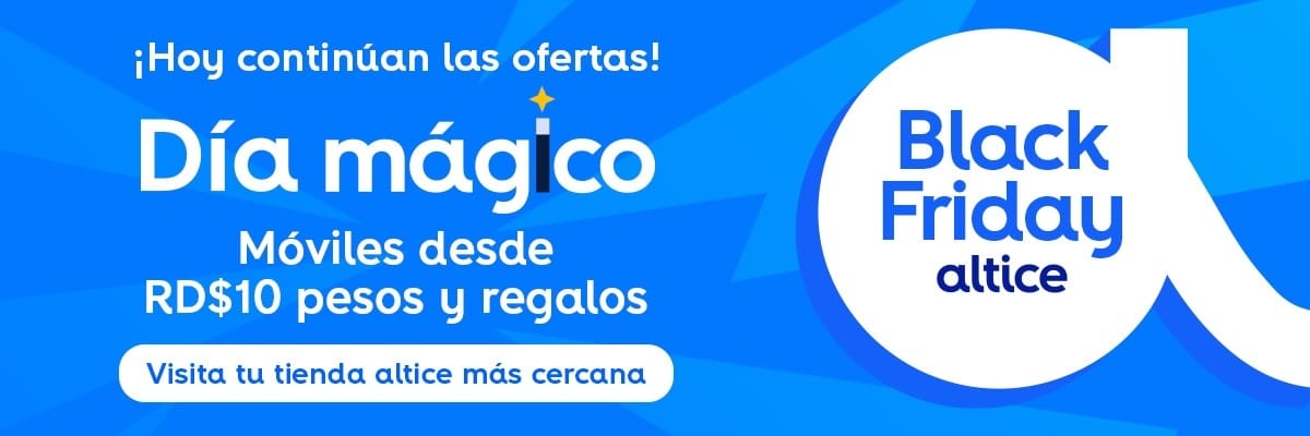 ¿Pensaste que lo mejor ya había pasado? Pues no, las ofertas siguen. Continua el Blackfriday de altice con móviles desde RD$10 pesitos, regalos y especiales. Corre a tu tienda Altice más cercana y sigue disfrutando porque ¡Altice todavía te da más!