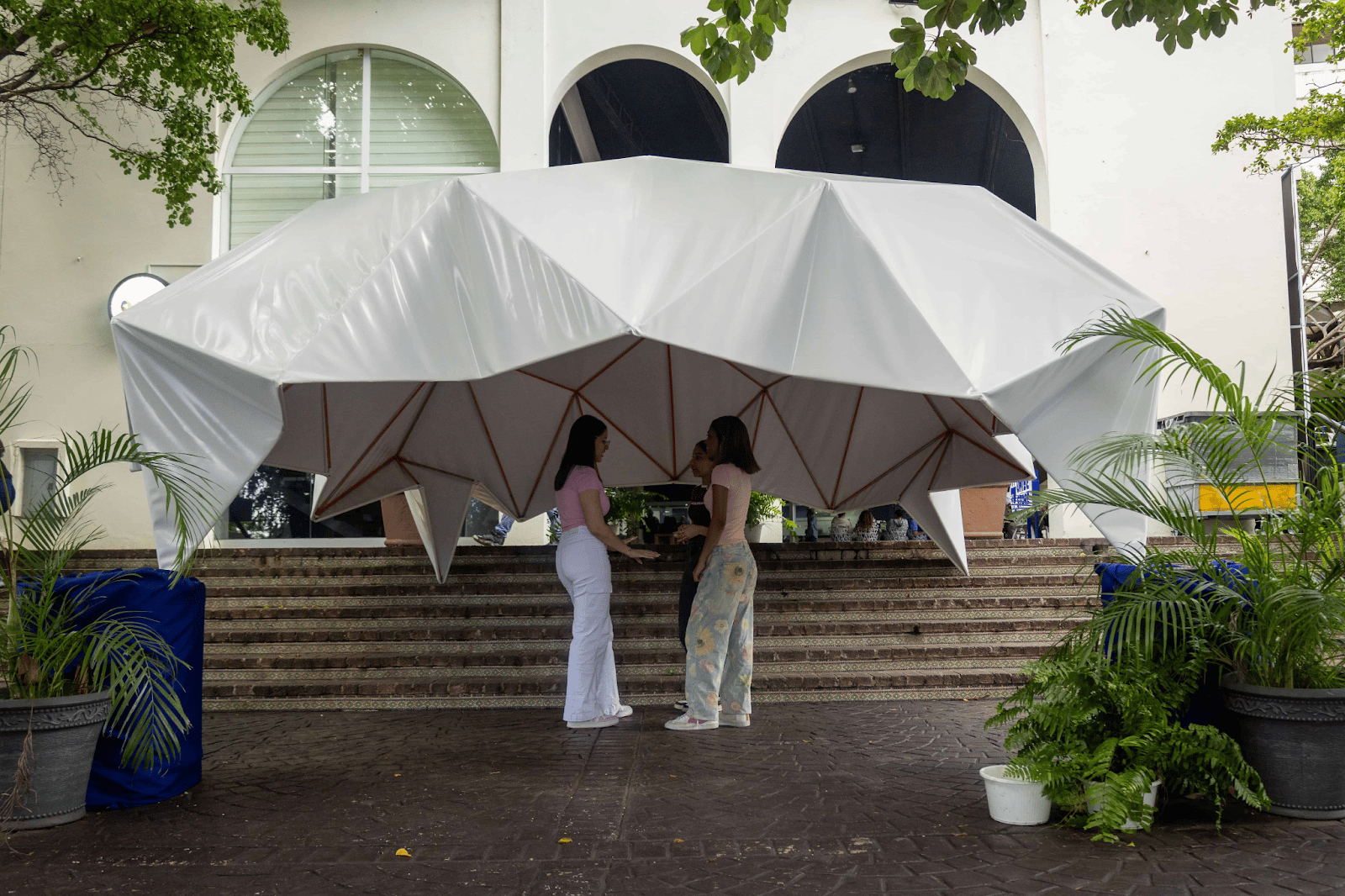 Esta es una carpa portátil, diseñada y patentada por el arquitecto dominicano Jesús D’Alessandro. Está pensada para emergencias, eventos al aire libre y cualquier otro espacio temporal en exteriores. Fácil de transportar y de doblar, y se puede reutilizar cuantas veces sea necesario.