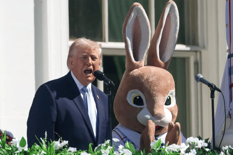 Trump habló sobre la guerra y cómo quiere destruir a Irán acompañado de este tierno Conejo de Pascua, en la tradicional ceremonia de búsqueda de huevos de pascua en la Casa Blanca.